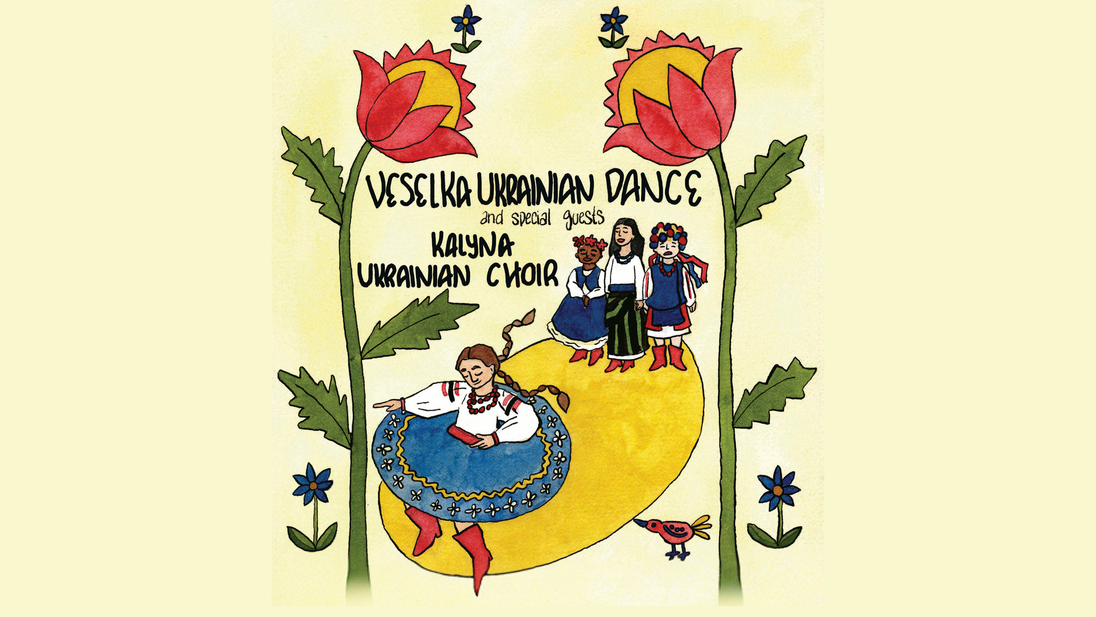 Join the Veselka Ukrainian Dance Association for a captivating year-end performance showcasing our dancers' hard work and passion. This unforgettable show celebrates Ukrainian culture through dynamic and colorful choreography. We are also thrilled to feature special guest performances by the Kalyna Ukrainian Choir, who will add their beautiful voices to this unique cultural event. Don't miss this opportunity to see the best of Ukrainian dance and song!